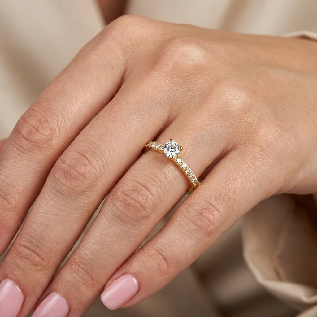 טבעת אירוסין סוליטר זהב צהוב עם יהלום מרכזי