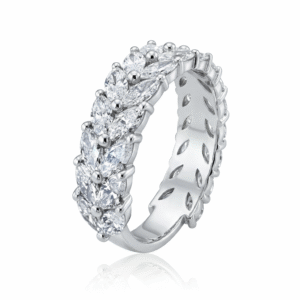 טבעת יוקרתית ומרשימה בעיצוב אלגנטי המשובצת שורת יהלומי מעבדה בחיתוך מרקיזה נוצץ, במשקל כולל של 2.40 קראט. היהלומים בדרגת איכות גבוהה במיוחד צבע D וניקיון VVS1, המעניקים ברק עוצמתי ומראה יוקרתי. הטבעת יצוקה זהב לבן 14 קראט ברוחב חישוק של 6 מ"מ, בעיצוב מלא ועשיר שמדגיש כל יהלום בצורה מושלמת. תכשיט ייחודי ומרשים המתאים לנשים שאוהבות נוכחות, יוקרה וברק בלתי מתפשר.