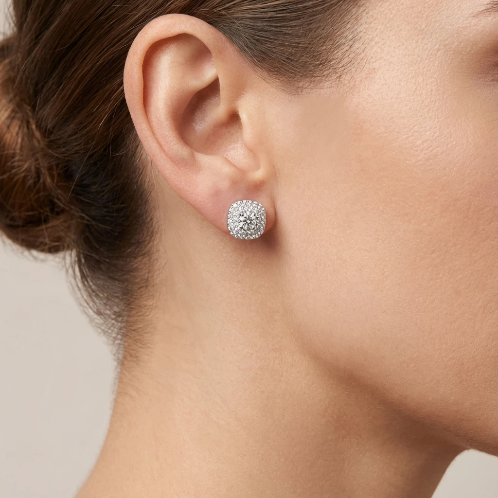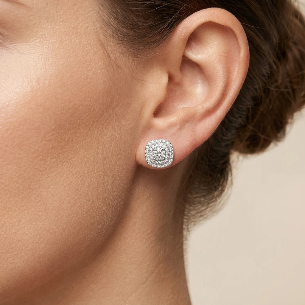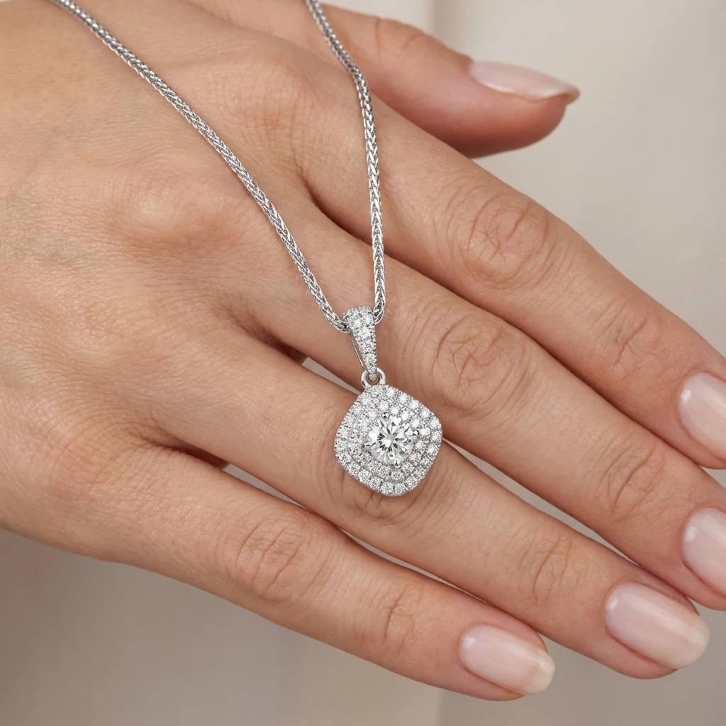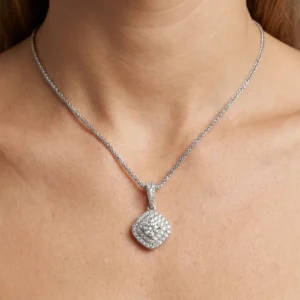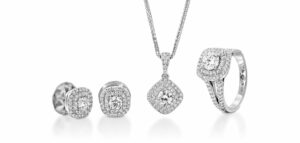 סט תכשיטים מרובע 2 שורות זהב לבן ויהלומים